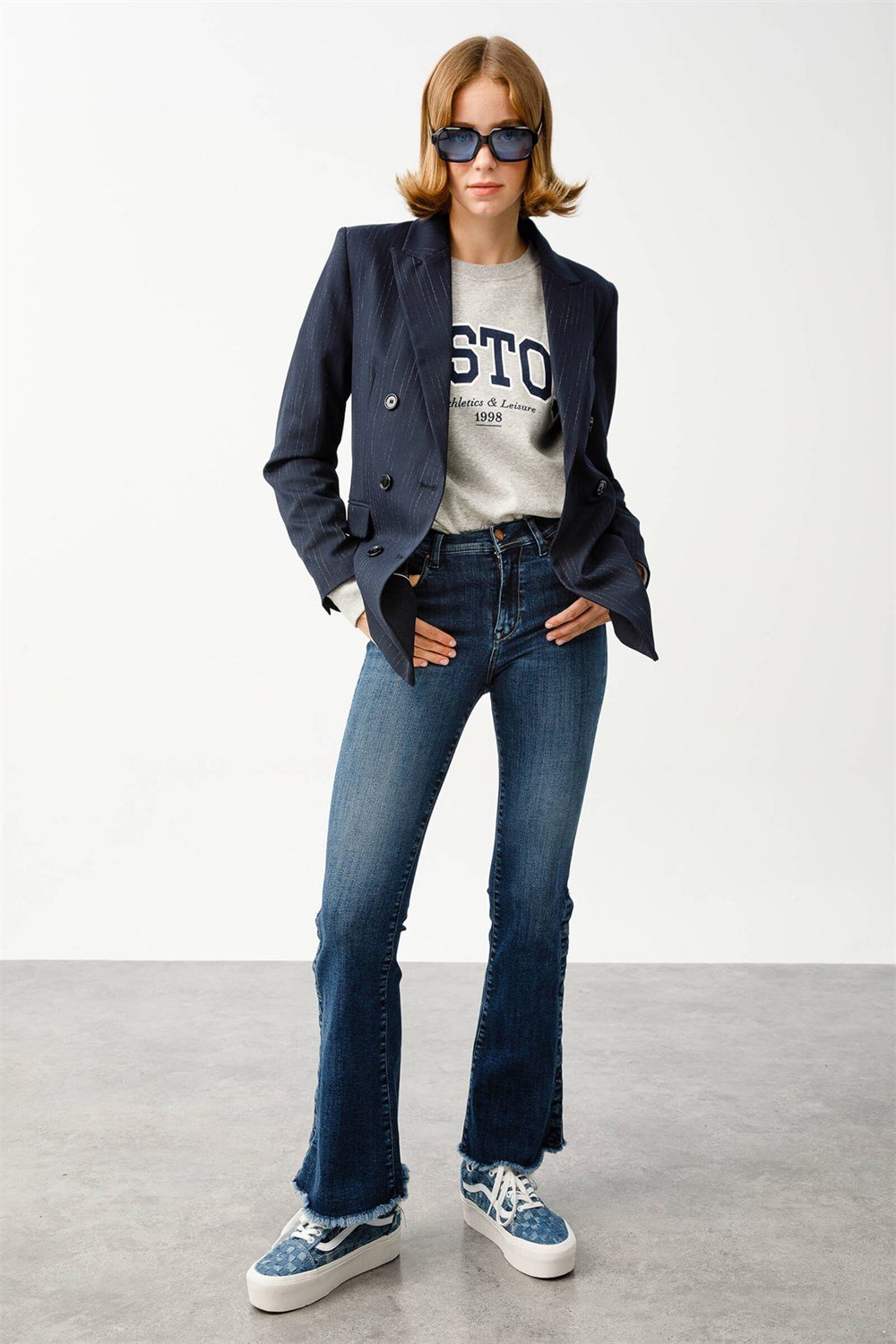 BRIDGETTE Skinny Flare Fit Normal Bel Geniş Paça Koyu Indigo Kadın Jean Pantolon