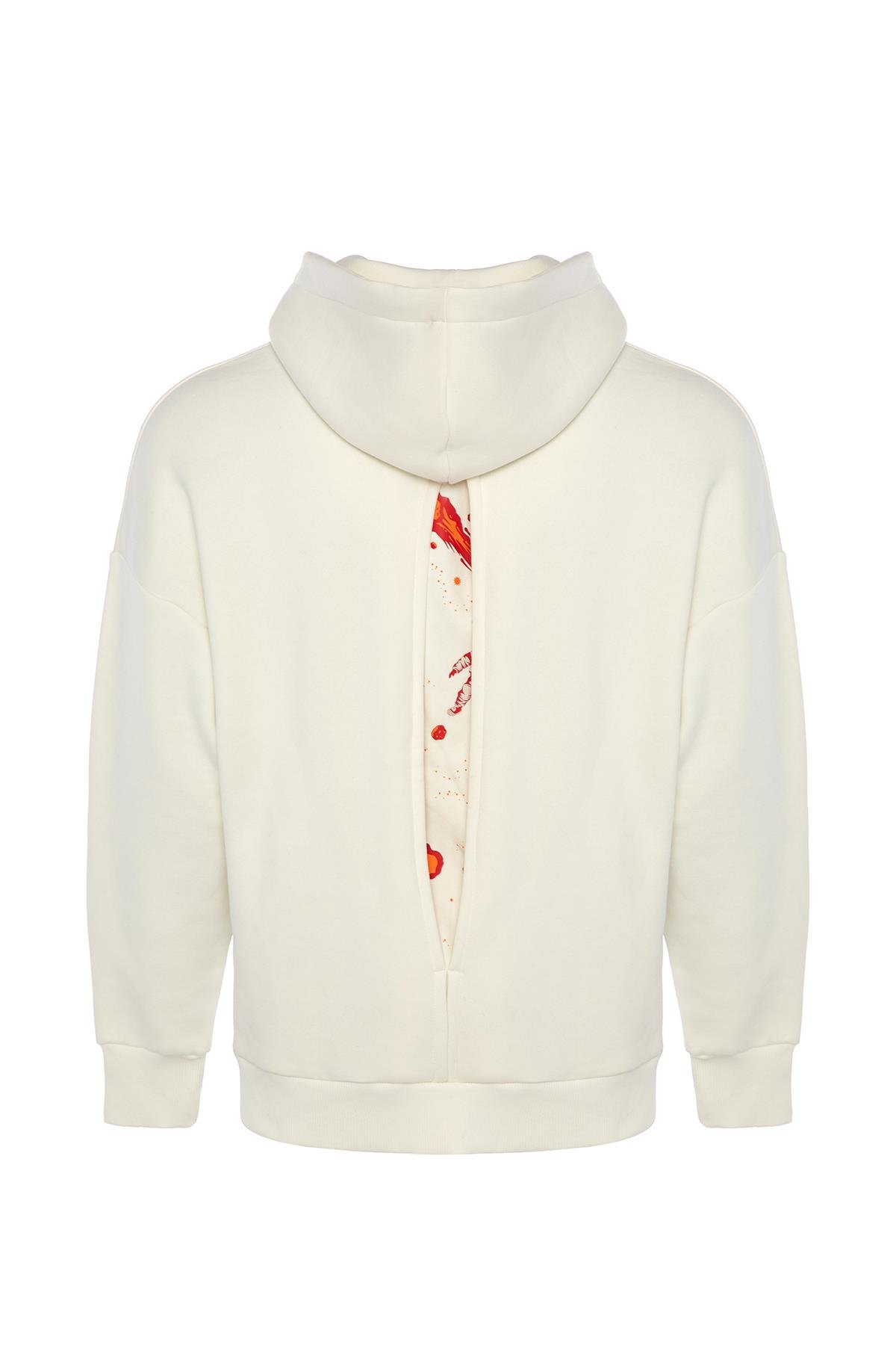 Oversize Fit Baskılı Ekru Erkek Hoodie / Sweatshirt (DT10416)