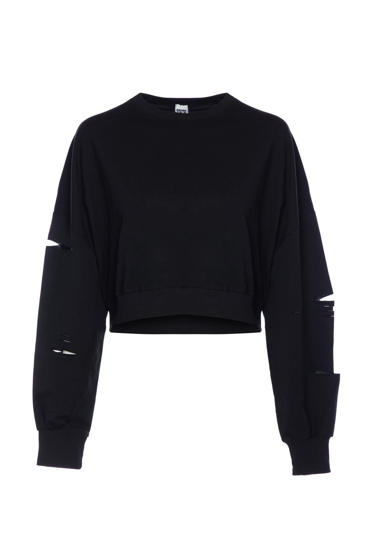 Rahat Fit Kesik Detaylı Siyah Kadın Sweatshirt (DT10327)
