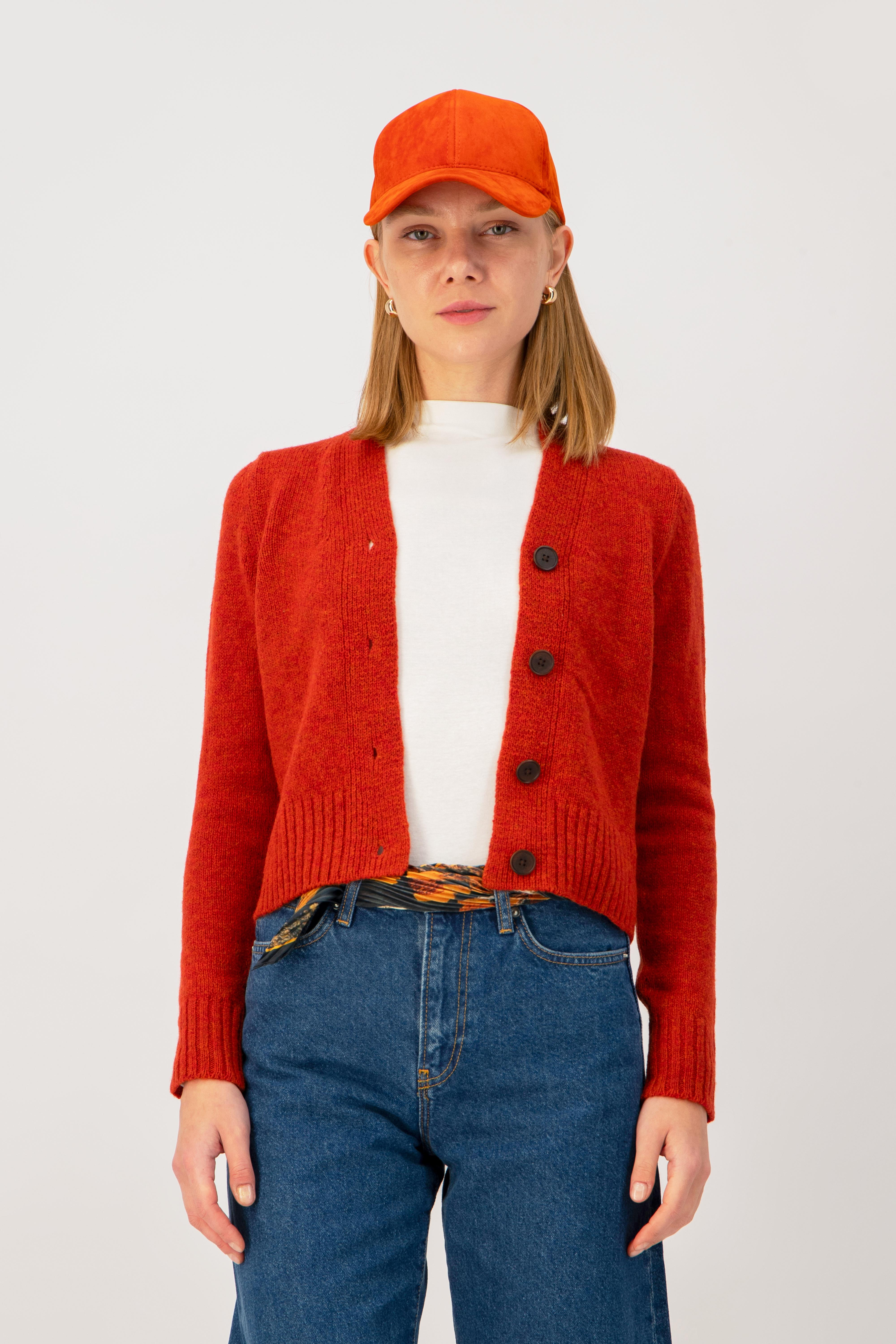 Slim Fit V Yaka Tarçın Düğmeli Kadın Yün Hırka